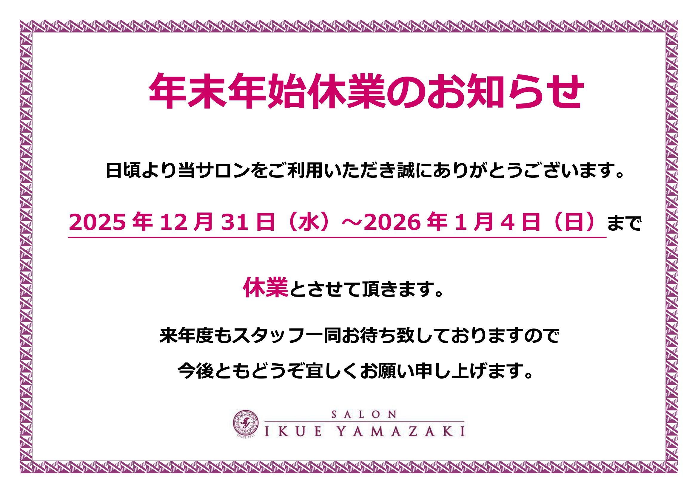 年末年始のお知らせ